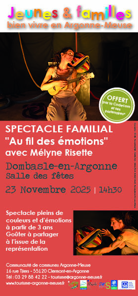 Le spectacle familial « Au fil des émotions » de Mélyne Risette se tiendra dimanche 23 novembre 2025 à 14h30 à la salle des fêtes de Dombasle-en-Argonne.